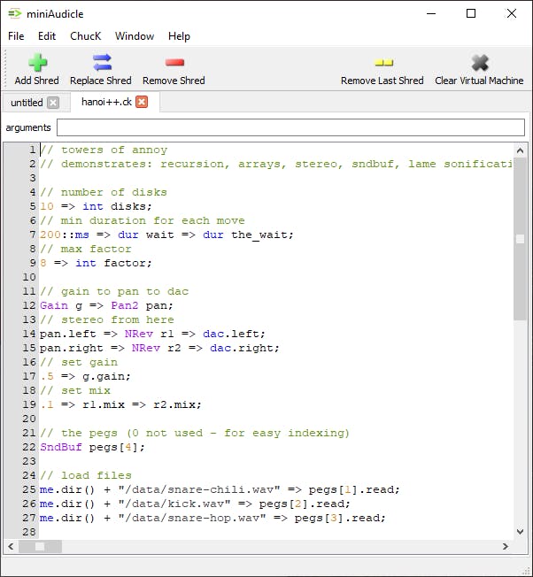 Muziekprogramma’s zijn tv- of radio-uitzendingen waar muziek wordt gespeeld of software om muziek mee te maken of te draaien. ChucK geeft het woord echter een hele nieuwe betekenis. ChucK is een programmeersysteem om (experimentele) muziek mee te maken. De gebruikte taal heeft alles aan boord om geluiden te produceren, samples af te spelen en midi-instrumenten aan te sturen. In ChucK maakt u kleine programmaatjes die u naar een virtuele machine stuurt waar ze met meerdere tegelijk kunnen worden uitgevoerd. Op die manier creëert u complete stukken en zelfs optredens die u live kunt aanpassen.