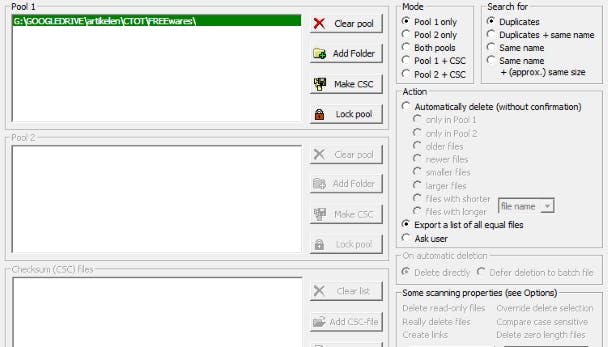 Het kan natuurlijk gebeuren dat je een omvangrijke schijf al op dubbele bestanden hebt gecontroleerd en dat je nu wilt nagaan of een bijkomende (externe?) schijf bestanden bevat die al op die eerste schijf voorkomen. In zo'n geval kun je handig gebruik maken van zogenoemde 'pools' (groepen). Je brengt die bijkomende schijf dan in een tweede pool onder en je maakt CloneSpy duidelijk dat die alleen naar duplicaten tussen beide pools moet speuren en dus niet binnen elke pool afzonderlijk. Op die manier kun je het zoekproces versnellen.