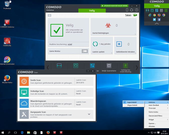 De desktop na de installatie van Comodo Antivirus.