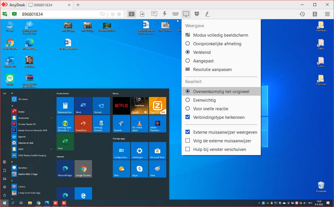 De persoon aan de andere kant van de lijn ontvangt nu een verbindingsverzoek. Na honorering van dit verzoek verschijnt het bureaublad van je vriend(in), familielid of kennis in beeld.