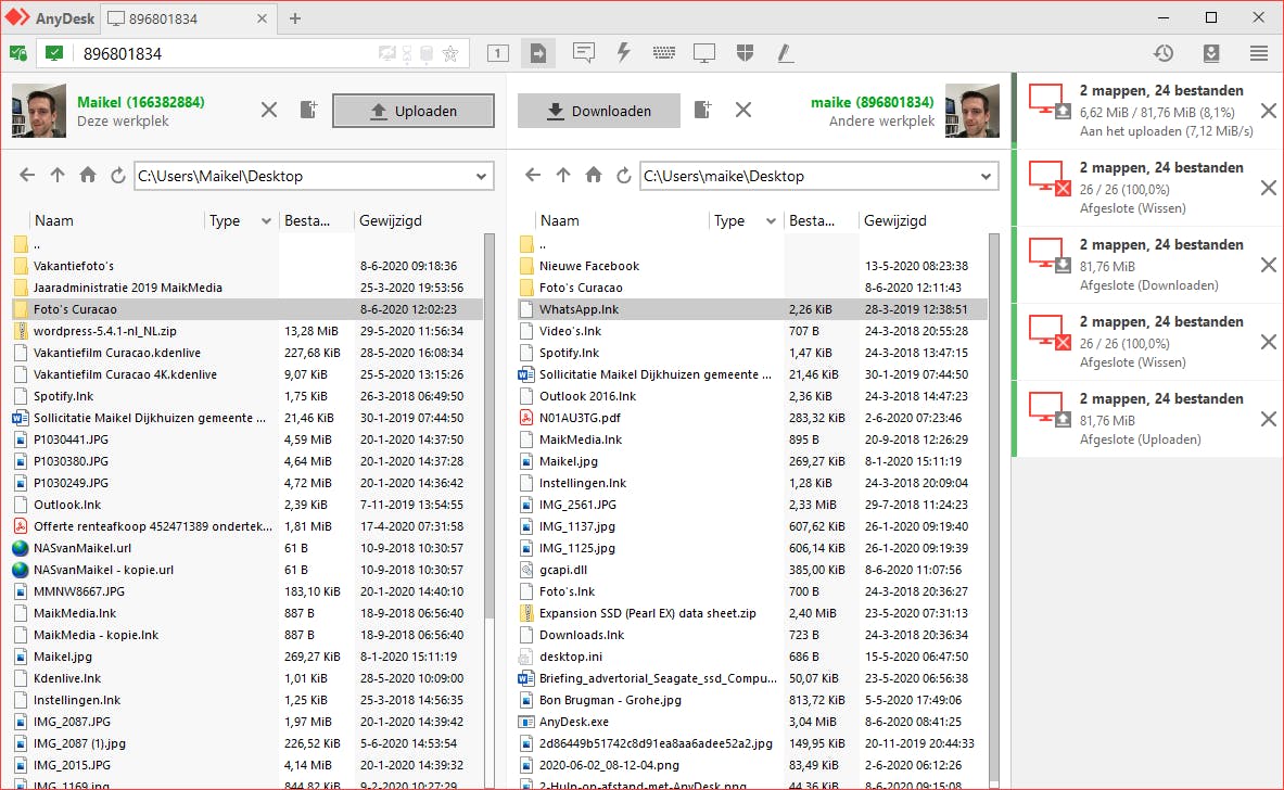 AnyDesk is uitermate geschikt om op afstand bestanden tussen verschillende computers uit te wisselen. De directe verbinding leent zich uitstekend voor het delen van forse bestanden.