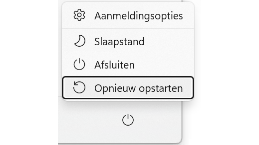 Herstelmodus via Windows zelf Kun je Windows nog wel starten, maar heb je toch behoefte aan de herstelopties van de herstelschijf? Via het instellingenvenster van Windows 11 (Windows-toets+I) kun je Windows ook opnieuw opstarten in de herstelmodus. Kies voor Systeem / Systeemherstel. Bij Geavanceerde opstartopties klik je op Nu opnieuw opstarten. Ook via het aanmeldingsscherm (waarin je je wachtwoord opgeeft), kun je Windows in de aangepaste modus starten: klik op het pictogram Aan/uit en kies Opnieuw opstarten terwijl je de Shift-toets ingedrukt houdt.