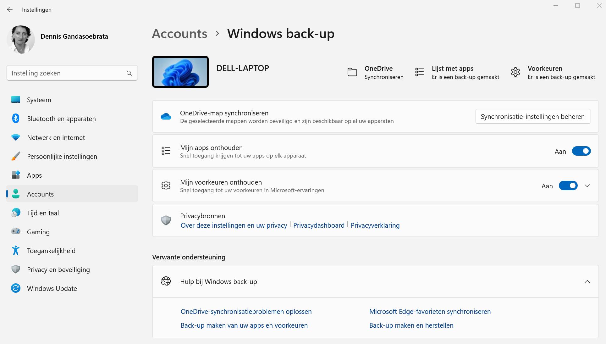 - Back-uppen naar OneDrive