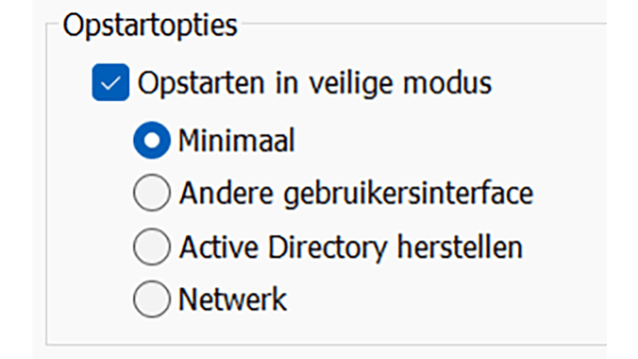 De herstelmodus geeft je toegang tot nog meer opstartinstellingen. Als Windows niet meer opstart, maar je niet zeker weet waaraan dit ligt, kun je de computer opstarten in de veilige modus. Hierbij gebruikt Windows alleen het minimale aan drivers en services. De kans wordt hiermee groter dat de computer alsnog kan opstarten. Vervolgens kun je persoonlijke bestanden veiligstellen en de mogelijke oorzaken verder onderzoeken. Kies voor Veilige modus inschakelen. In die modus heb je geen toegang tot internet. Heb je dat wel nodig, dan kies je voor Veilige modus met netwerkmogelijkheden inschakelen.
