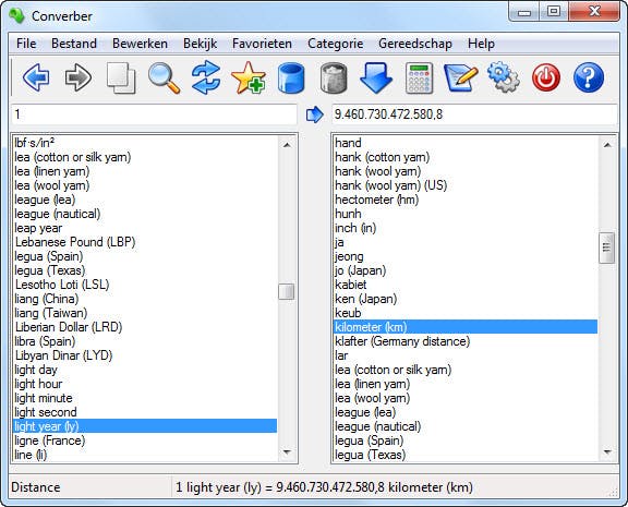 Let er tijdens de installatie op dat de taalbestanden geselecteerd dienen te worden, anders worden deze niet geïnstalleerd en kan alleen Engels als taal worden gebruikt. Ga naar Tools / Options en kies Nederlands in het uitklapvenster bij Languages, om Nederlands als taal te gebruiken. Ondanks dit minpunt is Converber een zeer krachtig tootje, dat een gigantische hoeveelheid getalleneenheden bevat. De interface voelt snel vertrouwt aan en zitten er een aantal handige extra functies in.