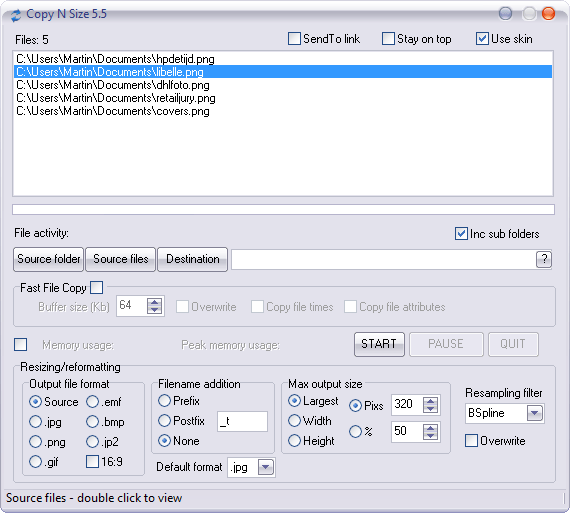 Het krachtige aan Copy N Size is dat u ook de mogelijkheid hebt om het formaat van de afbeeldingen aan te passen. U kunt de grootte aanpassen aan de hand van de hoogte of breedte, of aangeven dat de hoogste van deze twee waarden moet worden gebruikt bij het schalen. Tot slot kunt u verschillende 'resampling' filters toepassen, maar daarover wordt helaas weinig uitleg gegeven. Het programma biedt sowieso niet heel veel uitleg, maar het is gelukkig niet moeilijk om uit te vinden hoe alles werkt. Misschien nog wel het allermooiste is dat het programma draagbaar is, zodat u het altijd en overal kunt toepassen.