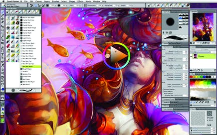 Het gedrag van penselen is volledig naar eigen hand te zetten. De drijvende kleurencirkel maakt het beoordelen van kleuren eenvoudiger.