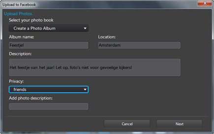 Naast de mogelijkheid om te converteren voor specifieke mobiele apparaten kan CyberLink Media Espresso 6 uw videobestanden rechtstreeks vanuit het programma op YouTube publiceren. Hebt u een Facebook-profiel? Selecteer de foto’s die u op uw profielpagina wenst te publiceren en kies vervolgens in welk Facebook-fotoalbum de afbeeldingen opgeslagen moeten worden. U kunt nog een beschrijving toevoegen en de privacyopties instellen. Videobestanden kunt u eveneens op Facebook publiceren.