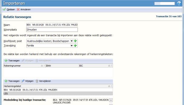 Gelukkig is het voor een deel te automatiseren. Door relaties met herkenningspunten aan te maken, verwerkt het programma de transactie de volgende keer automatisch. Na deze klus krijg je een overzicht van je financiën te zien. Zo is in één keer te zien wat je per maand aan boodschappen, hobby's en verzekeringen betaalt.