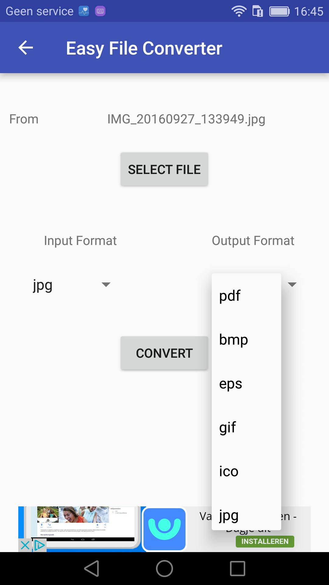 Waarom nog je pc opstarten om bestanden te converteren? Met de app Easy File Converter kun je zelf bestanden op je Android omzetten naar een ander bestandsformat. Afbeeldingen, e-books, video’s, documenten... De app kan bijzonder veel soorten bestanden aan, volgens de ontwikkelaar meer dan 200 bestandsformaten. Er was een gratis versie van de app, die vervelende fullscreen advertenties had met geluid. Deze werd onlangs echter uit de Play Store gehaald. De advertentieloze variant is nog wel gewoon te vinden en kost je bijna twee en een halve euro.