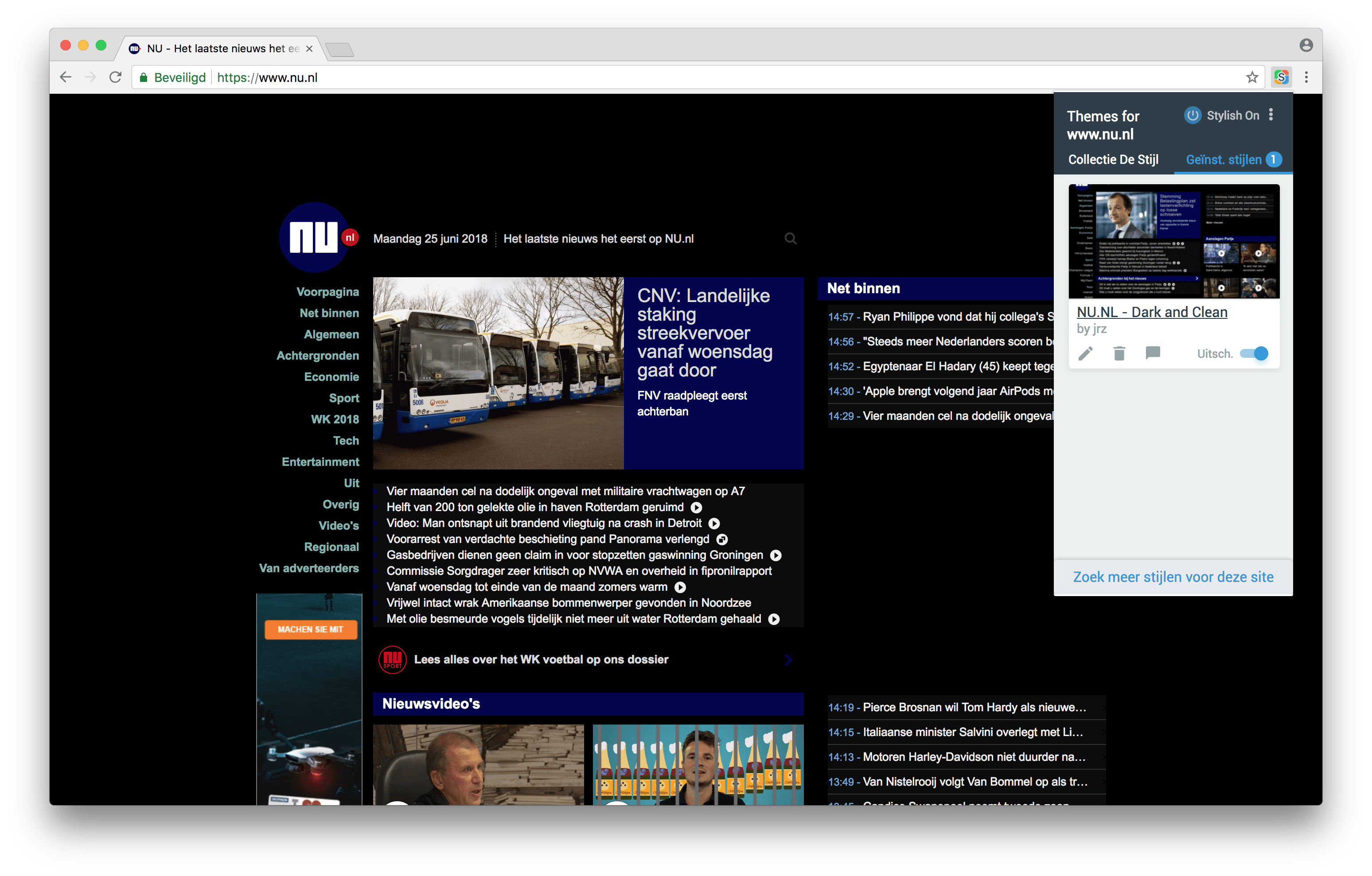 Wil je het uiterlijk van een website kunnen veranderen? Installeer dan de extensie Stylish voor Chrome. Open een website en klik op de extensieknop om te zien of er andere stijlen op de pagina zijn toe te passen. Voor de Google-startpagina zijn er bijvoorbeeld heel veel verschillende opties te vinden. Klik op Zoek meer stijlen voor deze site en als een stijl je bevalt, klik je op Install Style. De website wordt nu meteen aangepast en elke volgende keer als je deze site bezoekt, zal deze met de nieuwe stijl worden getoond. Er zijn alleen stijlen beschikbaar voor bekende sites van bijvoorbeeld Google, Twitter, Facebook en Apple. Nederlandse sites zoals NU.nl en NOS.nl hebben echter ook alternatieve stijlen.