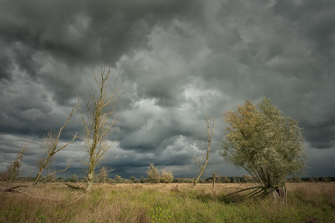 Je zou misschien denken dat je hier een wolkenpartij boven de Afrikaanse steppe ziet. Het gaat hier echter gewoon om de Oostvaardersplassen in ons eigen landje. Het groen van de begroeiing steekt prachtig af tegen de donkergrijze lucht.