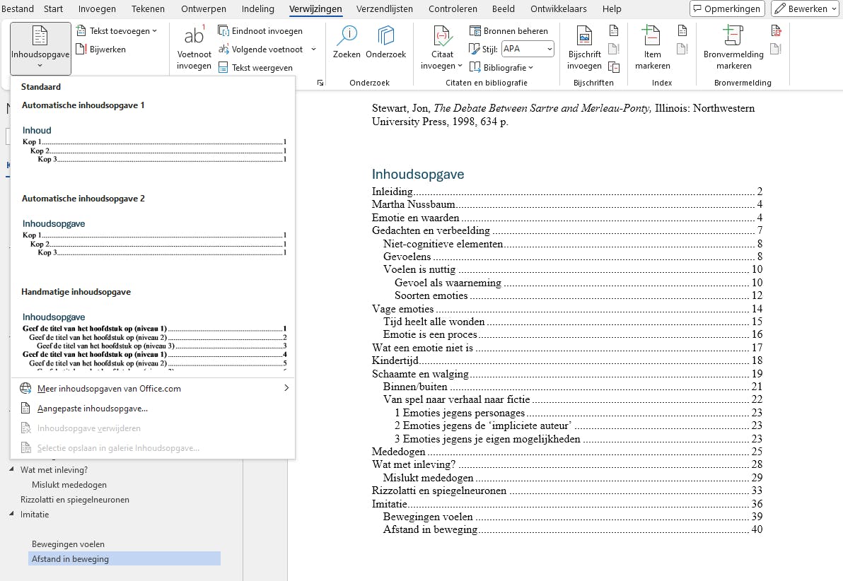 Als je kopstijlen gebruikt, maakt Word heel eenvoudig een inhoudsopgave voor je.