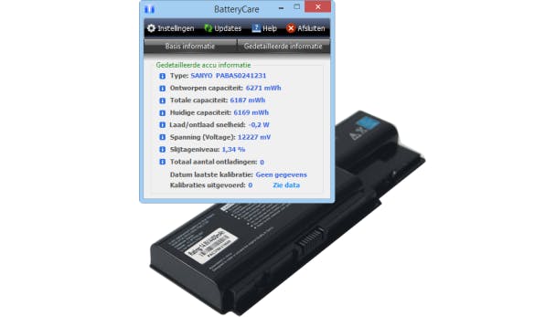 BatteryCare weet alles over de accu van je laptop. Ook helpt het programma om langer door te werken op een acculading en je accu te onderhouden. BatteryCare stelt bijvoorbeeld voor om minimaal één keer in de 30 oplaadcycli de accu volledig te ontladen. BatteryCare toont een icoontje in je systeemvak. Dubbelklik hierop voor uitgebreide informatie, zoals de resttijd en accustatus. Diepgaande informatie vind je achter de knop Gedetailleerde informatie.