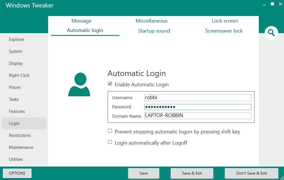 Voor wie graag aan Windows-instellingen sleutelt is Windows Tweaker een aanrader. Het programma herbergt een schat aan instellingen en opties. Veel instellingen zijn alleen voor experts interessant, maar ook beginners kunnen er ergernissen mee oplossen. Denk bijvoorbeeld aan het automatisch aanmelden bij Windows. Met Windows Tweaker heb je dit snel ingesteld bij Login / Automatic login. Ook kun je het gedrag van de rechtermuisknop aanpassen en hier bijvoorbeeld opties verwijderen of juist nieuwe toevoegen. Deze instellingen vind je bij Right click.