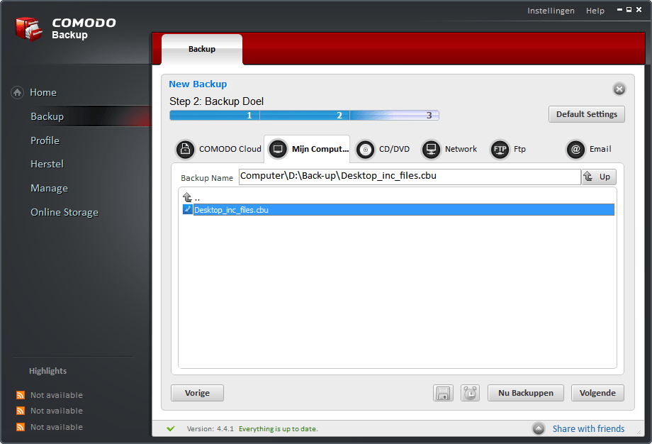 Het maakt niet uit welke oplossing je gebruikt, als je er maar over na hebt gedacht en een plan hebt. We hebben het over een goede back-up. Met Comodo Backup kun je dit snel regelen. Het programma kan je volledige systeem veiligstellen of alleen je belangrijkste mappen. De back-up kun je opslaan op bijvoorbeeld een externe schijf, netwerkschijf of online opslag bij Comodo Cloud. Voor dit laatste heb je een abonnement nodig, de overige oplossingen zijn kosteloos te gebruiken. Met Backup stel je je reservekopie in. Kies voor Mappen en bestanden als je bijvoorbeeld de inhoud van de map Documenten wilt veiligstellen. Klik steeds op Volgende om de back-up in te stellen. Het terugzetten van een back-up doe je via Herstel.