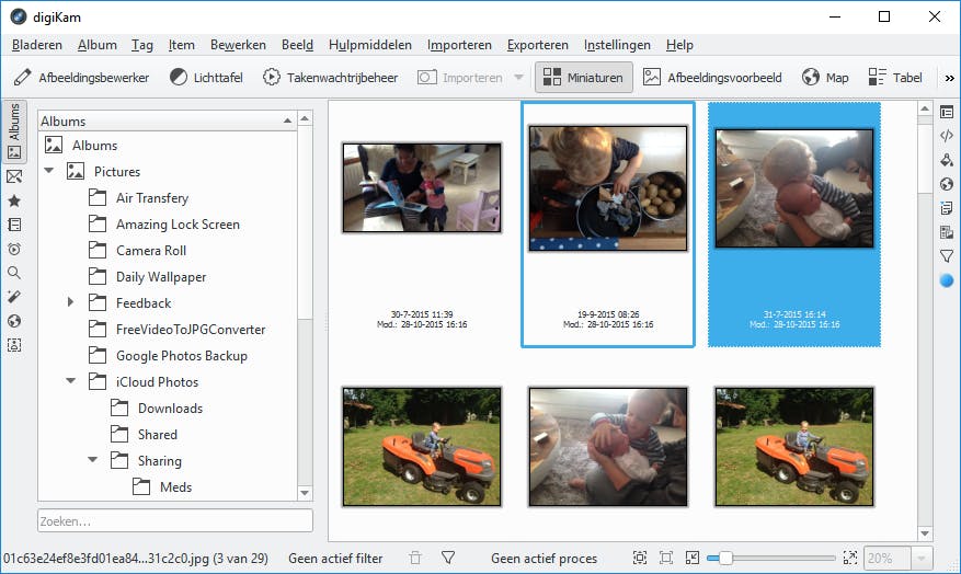 Het programma digiKam is een fotobeheerder voor je computer en werkt onder alle gangbare besturingssystemen. Er zijn meer van dit soort oplossingen, het is maar net welke je het prettigst vindt werken. Als je een Adobe-liefhebber bent gebruik je waarschijnlijk Bridge en/of Lightroom. Misschien heb je nog wel een oude versie van Picasa draaien? DigiKam biedt een goed alternatief om snel door je fotocollectie te bladeren. Dubbelklik op een afbeelding voor een vergroting. Geef afbeeldingen sterretjes om je favoriete kiekjes later snel terug te vinden. Ook kun je met digiKam albums aanmaken en basale fotobewerkingen uitvoeren zoals roteren, exporteren naar een ander formaat en zijn er vele andere mogelijkheden. Met een opsomming van de opties doen we digiKam te kort, experimenteer met het programma om te zien wat je er nog meer mee kunt. Bekijk ook vooral de knop Map. Hiermee toon je je afbeeldingen op een landkaart en dat is leuk als je foto’s hebt gemaakt met een smartphone. Deze fotobestanden zijn vaak al voorzien van gps-coördinaten waardoor je je afbeeldingen snel op locatie kunt selecteren en bekijken.