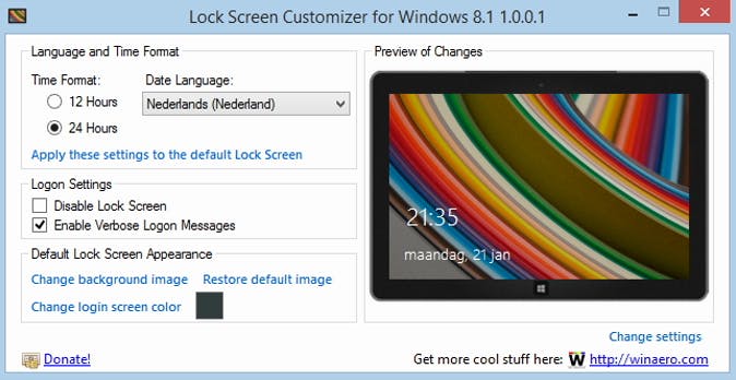 De meeste instellingen van het beginscherm van Windows 8.1 vind je in Windows zelf. Ga naar Charms-balk / Instellingen / Pc-instellingen wijzigen / Pc en apparaten / Vergrendelingsscherm. Hier kun je bepalen welke afbeelding(en) je wilt zien en eventueel apps toevoegen aan je vergrendelingsscherm. De wildgroei aan opties van het vergrendelingsscherm komen het overzicht niet ten goede. Lock Screen Customizer biedt het tegenovergestelde: bijna geen opties, maar hierdoor wel zeer overzichtelijk. Gebruik Lock Screen Customizer als je even snel een nieuwe afbeelding wilt instellen voor je vergrendelingsscherm en geen zin hebt om te zoeken naar de juiste instelling hiervoor. Ook kun je met één vinkje je beginscherm uitschakelen.
