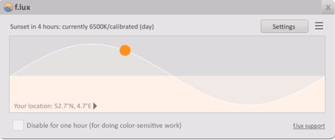 Tip 08 Geen vermoeide ogen meer: f.lux wijzigt de helderheid van je scherm automatisch gedurende de dag.