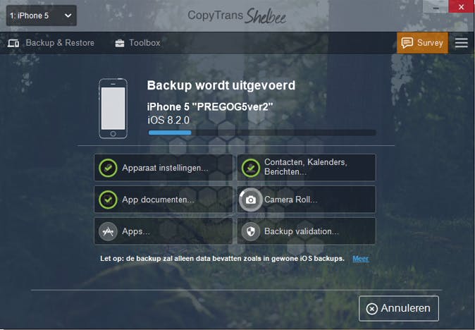 We bespreken regelmatig handige freeware om een goede back-up te maken van je mail, foto's of zelfs complete computer. CopyTrans Shelbee is een handig programmaatje om snel een reservekopie te maken van je iPhone, iPad of ander iOS-apparaat. Het leuke is dat je geen iTunes nodig hebt! Sluit je iOS-apparaat aan, start CopyTrans Shelbee en je kunt de back-up direct maken. De eerste keer dat je de CopyTrans Shelbee aan het werk zet, neemt het maken van de reservekopie veel tijd in beslag. Toekomstige back-ups kun je incrementeel laten uitvoeren. Hierbij worden alleen de wijzigingen overgezet en dat gaat veel sneller.
