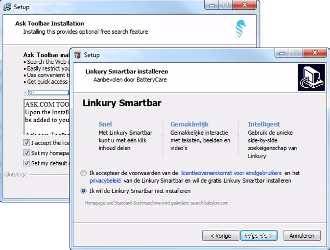 Wees altijd alert als je een programma installeert: voor je het weet, installeer je overbodige extra's of worden er instellingen aangepast.