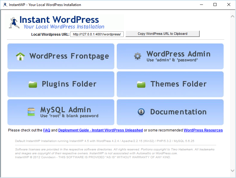 WordPress is wereldwijd het meest populaire cms (content managementsysteem). Met enige technische kennis installeer je WordPress op een internetserver met php- en MySQL-ondersteuning. Voor wie van deze termen schrikt en toch met WordPress wil experimenteren, is er InstantWP. Met slechts één download installeer je WordPress en alle serverbenodigdheden op je eigen computer. Dit maakt je website niet bereikbaar vanaf internet, maar geeft je wel de vrijheid om rond te snuffelen en te spelen met Wordpress, thema’s (vormgeving), plug-ins en alle andere uitbreidingen. InstantWP is daarnaast ook handig voor websitebouwers die snel een lokale ontwikkelomgeving op willen zetten.