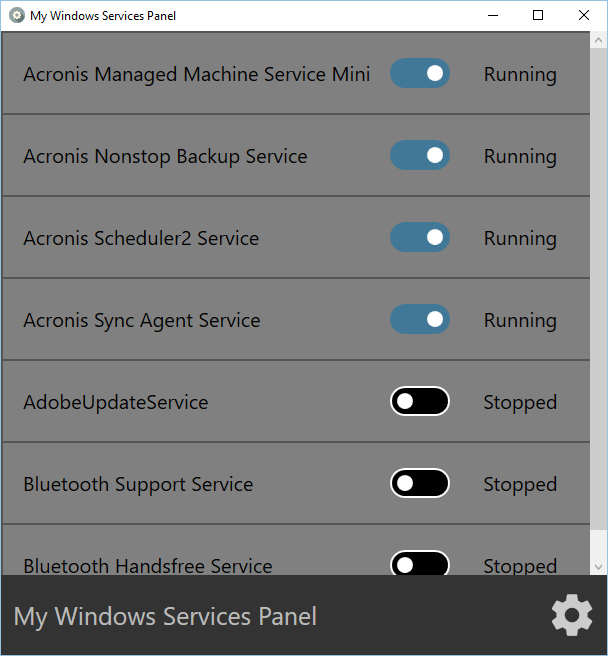 Met de toetscombinatie Ctrl+Shift+Esc roep je Windows Taakbeheer op. Hierin kun je allerlei achtergrondprogramma’s en ‘services’ starten, stoppen, herstarten of uitschakelen. Zelfs voor experts zijn de instellingen Spartaans en niet meer van deze tijd. My Windows Services Panel vereenvoudigt het beheren van de ‘services’. Het programma toont een overzicht met een aan/uit-schakelaar om onderdelen te (de)activeren. Het overzicht is in het begin nog leeg. Klik op het tandwieltje en kies welke onderdelen je in het overzicht wilt bedienen. Bij de keuze zie je ook de status ‘running’ of ‘stopped’. In de kolom Startup vind je de status Manual (handmatig starten) of Auto (automatisch starten). Maak je keuze, bevestig met Done en je keert terug naar het overzicht. Nu kun je met één muisklik je gekozen services in- of uitschakelen.