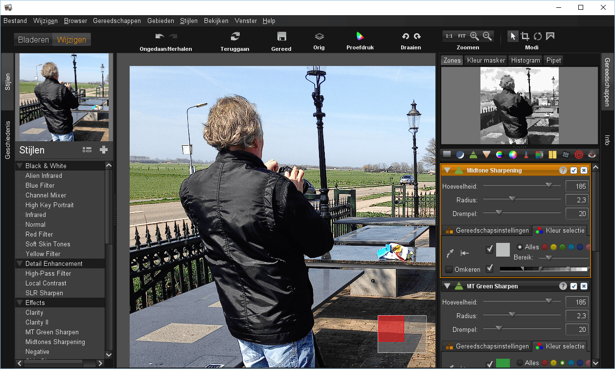 Het verbeteren van foto’s is voor de meeste mensen een hele klus. Professioneel gereedschap zoals Photoshop is kostbaar en heeft een lange ‘leercurve’. LightZone biedt goed gereedschap om standaard-fotobestanden en raw-afbeeldingen te bewerken. Dit kan handmatig via een enorme reeks instellingen. Het gaat echter sneller als je een voorkeursstijl kiest en deze vervolgens aanpast. Het is mogelijk om meerdere stijlen over elkaar heen te leggen. Zo kun je bijvoorbeeld een afbeelding verscherpen en hem vervolgens zwart/wit maken. Elke stap is ook weer eenvoudig ongedaan te maken. Bewerkte afbeeldingen exporteer je als jpg-bestand, het origineel blijft bewaard. LightZone heeft een ingebouwde batchverwerking om snel een aantal effecten toe te passen op een collectie afbeeldingen.