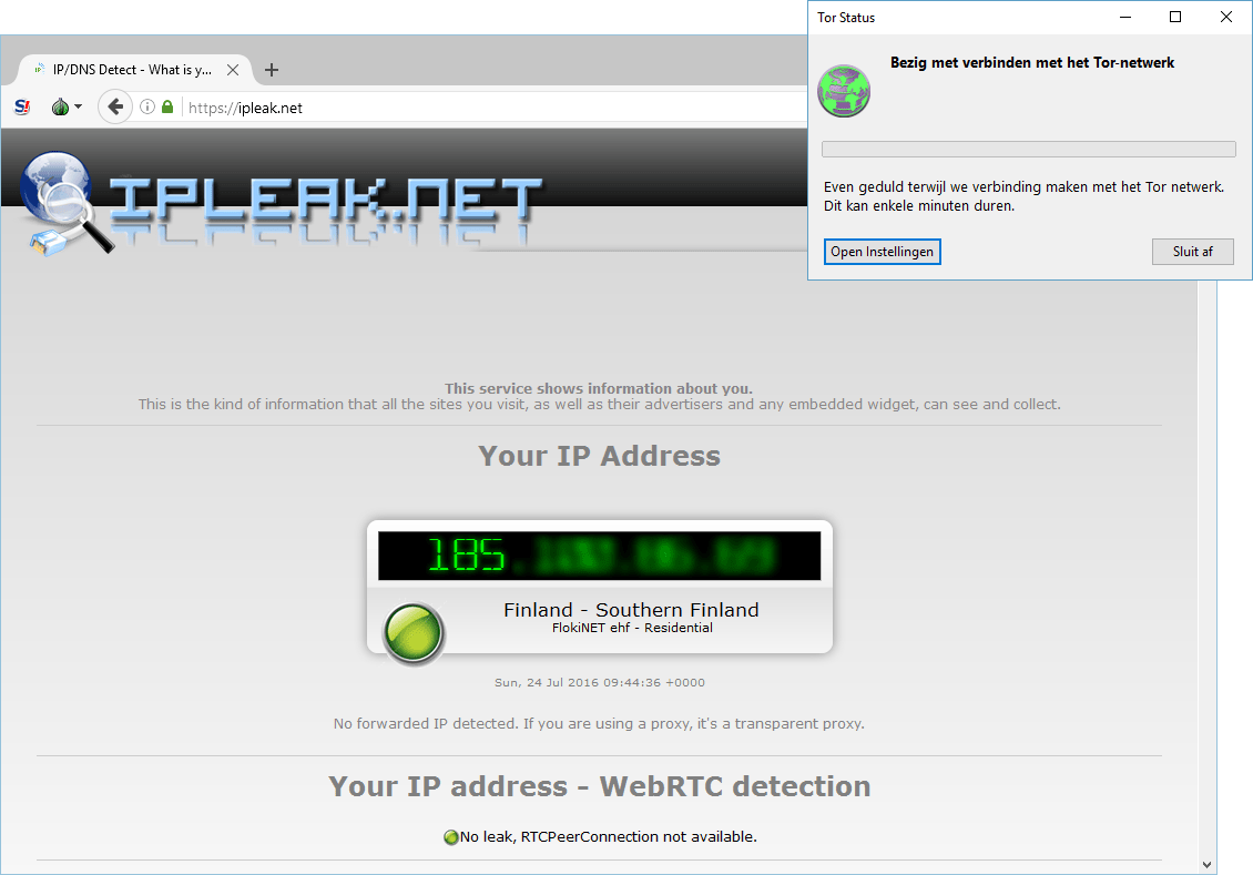 Netwerkbeheerders, reclamebedrijven en websites doen er alles aan om je in de gaten te houden. Dit doen ze op basis van je locatie, de websites die je bezoekt, je zoekgedrag, je aankopen en nog veel meer. Door deze technieken word je onder andere achtervolgd met steeds dezelfde reclames. Wil je om wat voor reden dan ook even anoniem(er) internetten? Probeer dan Tor Browser voor Windows. Deze oplossing zet een anonieme verbinding op met behulp van het Tor-netwerk. Dit wordt aangevuld met een aangepaste browser. Er is geen technische kennis vereist om het programma te gebruiken: starten, verbinden en alles werkt. Scripts die websites gebruiken om informatie over jou en je computer te verzamelen worden automatisch geblokkeerd. Ook surf je met een ander IP-adres over het web. Neem de proef op de som en surf met je normale browser naar www.ipleak.net. Herhaal dit vervolgens met Tor Browser.