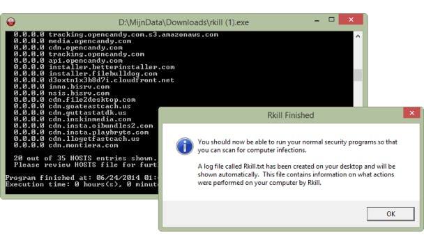 Sommige malware is niet zonder slag of stoot te verwijderen. Heeft de besmetting eenmaal plaatsgevonden, dan is het voor beveiligingssoftware lastig om de boosdoener te stoppen. Dit is meestal wel nodig, want anders kan de kwaadwillende programmatuur niet worden verwijderd. Het tooltje RKill richt zich niet op het verwijderen, maar wel op het stoppen. Het herkent een beperkt aantal (maar zeer populaire!) soorten malware en weet precies wat er nodig is om die uit te schakelen.
