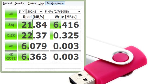 Opslagcapaciteit wordt steeds goedkoper. Dit geldt niet alleen voor harde schijven, maar ook voor usb-sticks. Sommige sticks zijn zelfs verpakt per zes of meer en liggen voor een spotprijs in de koopjesbak. We merken dat de ene usb-stick de andere niet is. Soms duurt het kopiëren naar een stick lang, de andere keer gaat het sneller dan verwacht. Met CrystalDiskMark kun je al je usb-sticks aan een snelheidstest onderwerpen om uit te vinden welke je nodig hebt als je veel (grote) bestanden op een stick wilt kopiëren.