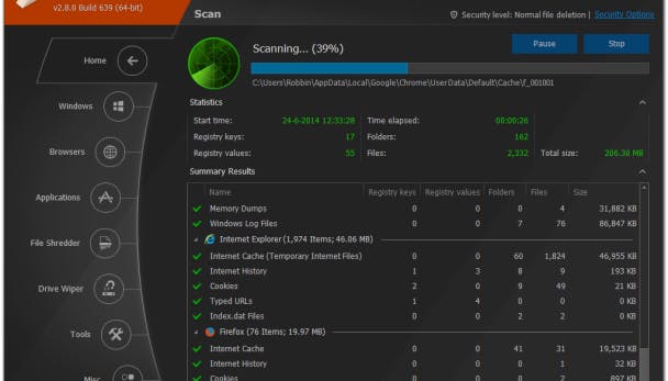 Tijdens het internetten laat je allerlei sporen achter. Zo onthoudt je browser wachtwoorden, dingen die je invult in formulieren en de websites die je bezoekt. Ook plaatsen websites tijdelijke bestanden op je computer, de zogenaamde cache-bestanden. Dit kunnen cookies zijn waarmee een website jou beter identificeert om reclames op aan te passen, maar ook afbeeldingen (en andere 'technische' onderdelen) van websites. Privacy Eraser Free ruimt deze sporen vakkundig op. Het programma ondersteunt alle bekende browsers. Privacy Eraser Free voert eerst een uitgebreide controle uit en geeft een overzicht van de aangetroffen sporen.