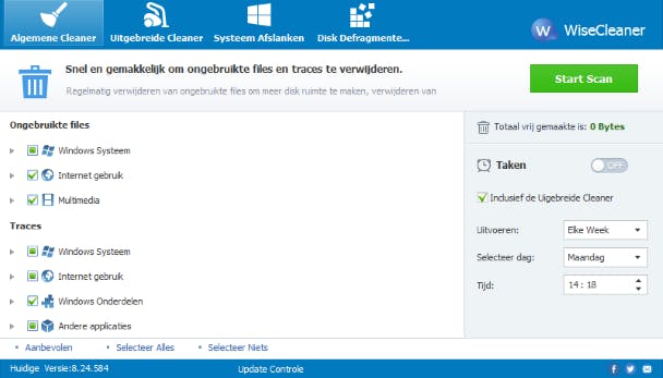 Normaal computergebruik leidt onherroepelijk tot een verkwisting van schijfruimte. Er blijven resten achter van installatiebestanden, tijdelijke bestanden van je browser en meer overbodige ballast. Wise Disk Cleaner Free weet hier wel raad mee! Het programma haalt de bezem door overbodige bestanden en verwijdert sporen in Windows, bijvoorbeeld onlangs geopende bestanden. Ook worden sporen van je browser gewist. Favorieten, plug-ins en persoonlijke bestanden blijven uiteraard intact.