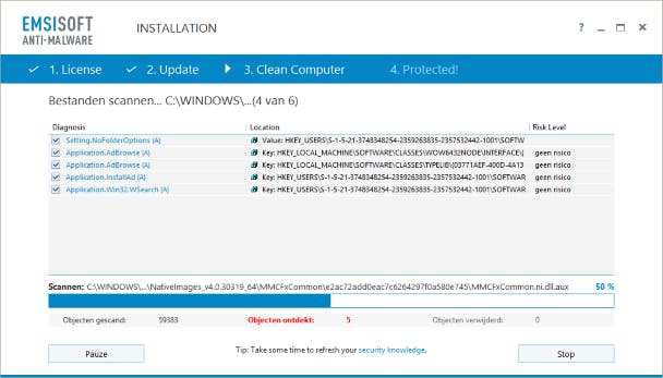 Heb je een onderbuikgevoel dat je virusscanner een steekje heeft laten vallen? Dan is het goed om een extra veiligheidscontrole uit te voeren. Hiervoor is Emsisoft Anti-Malware uitermate geschikt. Het programma haalt direct na de installatie de meest recente antimalwaredefinities op. Vervolgens kun je je computer laten onderzoeken op malware en dit direct laten verwijderen. Leuk extraatje is de mogelijkheid om zogenoemde 'PUPs' aan te pakken. Met deze afkorting bedoelt Emsisoft Anti-Malware 'potentially unwanted programs', oftewel: programma's die mogelijk ongewenst zijn. In deze categorie vallen bijvoorbeeld programma's die reclame bevatten (adware), maar ook ongewenste werkbalken in je browser.