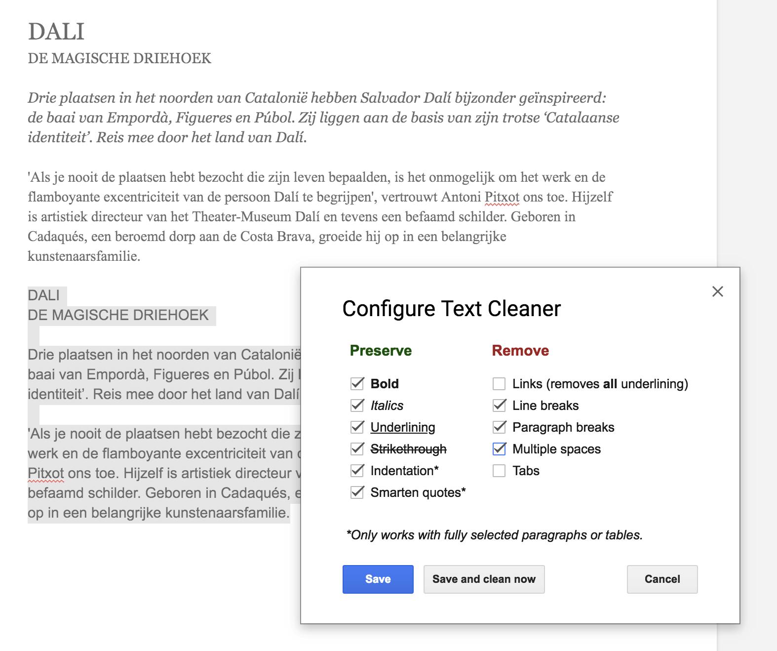 Moet je regelmatig tekst kopiëren en plakken? Dan moet je vast ook heel vaak ongewenste opmaak verwijderen. En dan hebben we het niet alleen over lettertype, lettergrootte, stijl, maar ook over hyperlinks, paragraaftekens, dubbele spaties, tabs, lijnafbrekingen enzovoort. Text Cleaner is een schoonmaker die deze opmaak in een vingerknip opruimt, maar je kunt deze tool ook slim inzetten via de optie Configure. In dat paneel vink je de opmaakkenmerken aan die deze tool moet wissen. In veel gevallen levert de selectieve aanpak een beter resultaat op dan dat je opgemaakte tekst met de grove borstel aanpakt.