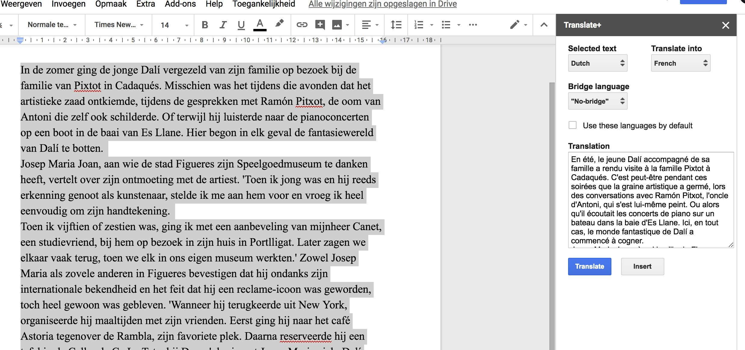 Om misverstanden te vermijden, we hebben het hier niet over de invoegtoepassing Translate of Translate plus, maar over Translate+ van de Vietnamees Thanh Viet Do. Met deze add-on vertaal je rechtstreeks in een Google-tekstdocument zonder dat je het document moet verlaten om Google Translate te openen. De invoegtoepassing heeft een Auto-detect knop, die van pas komt als je geen idee hebt of de tekst in het Russisch, Servisch of Oekraïens is geschreven. Het hulpje bevat heel veel talen, en wanneer er toch een taal ontbreekt, kun je gebruikmaken van een brugtaal zodat de tekst bijvoorbeeld eerst naar het Duits wordt omgezet en dan pas naar het Nederlands.