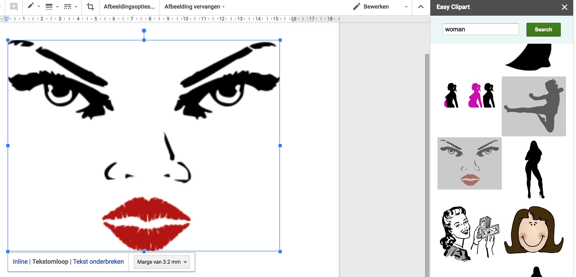 Google Documenten ken standaard geen bibliotheek met getekende plaatjes die vaak bij tekstverwerkers tegenkomt, ook wel clipart genoemd. Om snel wat van die tekeningen toe te voegen in een Google-document, is er de add-on Easy Clipart. Gebruik het zoekveld om aan te geven wat je zoekt, en klik dan op de gewenste afbeelding in de zoekresultaten. De clipart komt terecht op de plaats waar de muisaanwijzer staat. Eenmaal in het document kun je die afbeelding verplaatsen en de grootte ervan aanpassen. Bovendien bepaal je of en hoe de tekst om de afbeelding heen loopt en hoeveel afstand er tussen het plaatje en de tekst moet zijn.