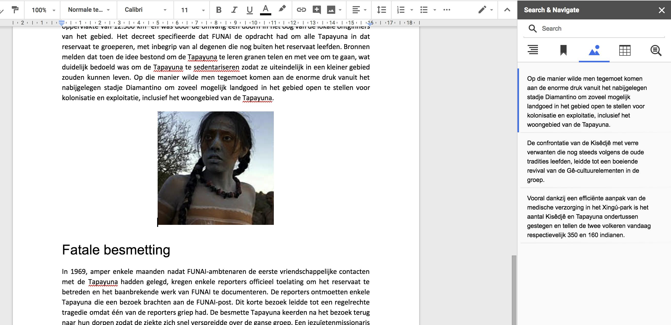 De gratis add-on Search & Navigate genereert automatisch een inhoudsopgave, tenminste als je met stijlkenmerken en headers hebt gewerkt. Wanneer je een bepaald woord zoekt, geeft deze uitbreiding aan hoe vaak dit voorkomt in iedere sectie van de tekst. Daarnaast krijg je een lijst met bladwijzers, afbeeldingen en tabellen. Bij afbeeldingen wordt helaas niet het beeld, maar een stukje tekst boven de afbeelding getoond. Vooral in uitvoerige tekstdocumenten is deze invoegtoepassing nuttig, want je navigeert onmiddellijk naar de juiste passage via de links in de zijbalk. Bovendien kun je in de voorkeuren van deze app instellen dat de zoekresultaten zich automatisch aanpassen wanneer je het document wijzigt.