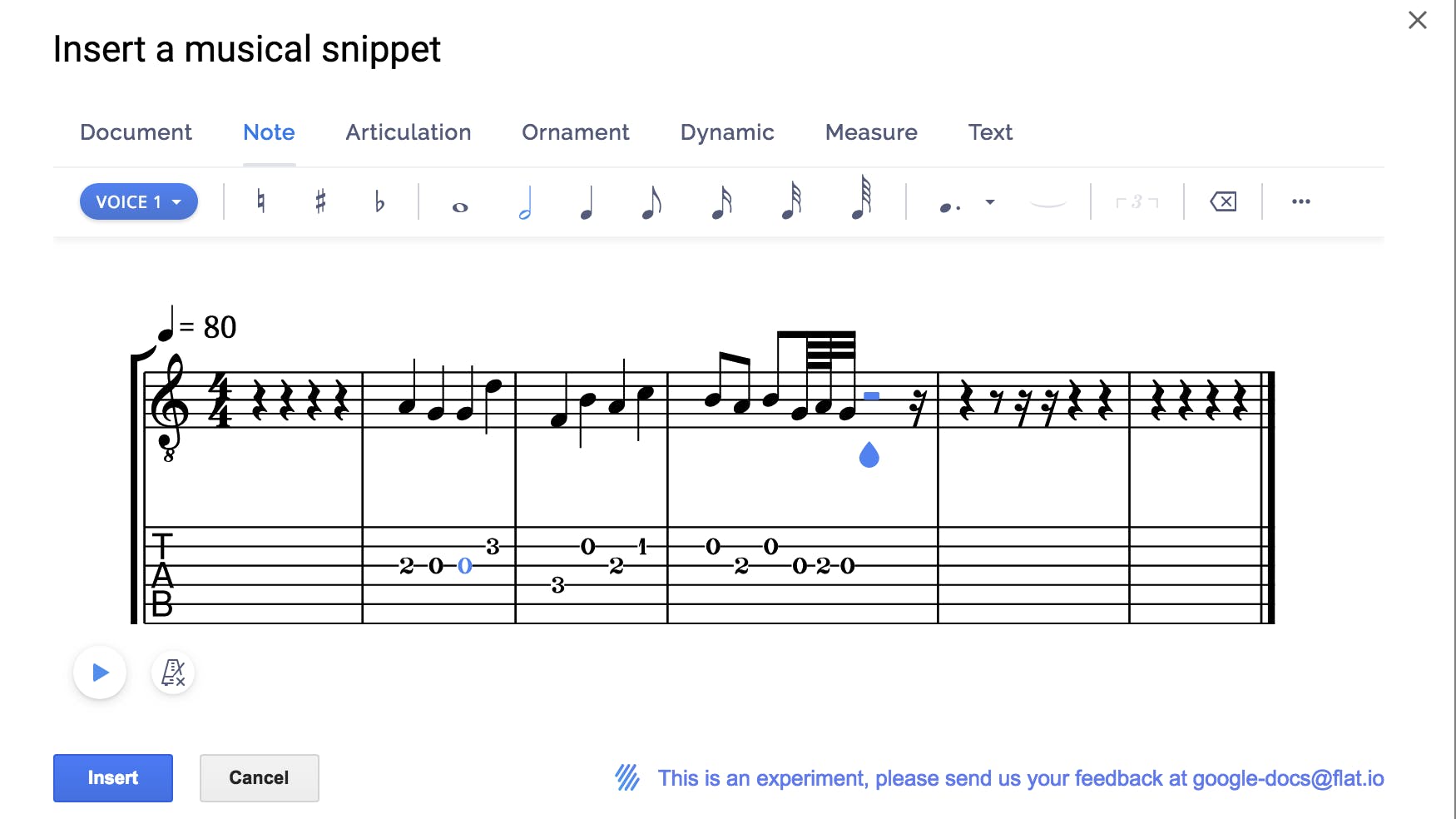 Gebruik Flat Music Notation om snel wat muzieknoten te noteren! Deze invoegtoepassing laat niet alleen toe om een kleine creatie te schrijven, je kunt hem ook beluisteren en rechtstreeks tweaken. Als je klaar bent, is er de knop Afspelen om de muziek te beluisteren. Deze muzikale snippet is een lite-versie van webbased applicatie Flat.