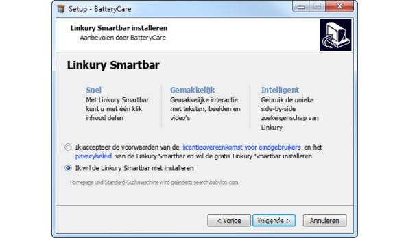 Let altijd goed op tijdens de installatie om webbrowseraanpassingen en overbodige software te voorkomen.