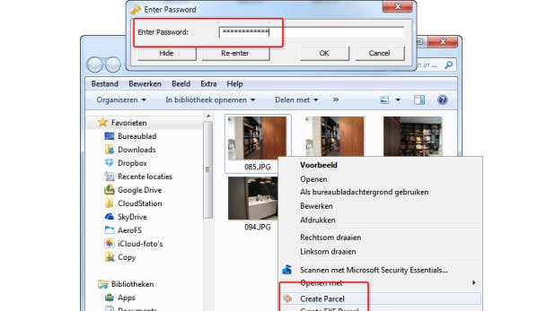 Silver Key Free versleutelt bestanden die je privé wil houden en voorziet ze van een wachtwoord. Klik met de rechtermuisknop op een bestand of map en kies Create parcel. Geef een wachtwoord op om het bestand te versleutelen. Er wordt een beveiligde kopie bewaard in een sk-bestand. Dubbelklik op het sk-bestand, geef het wachtwoord op en maak de inhoud weer zichtbaar.