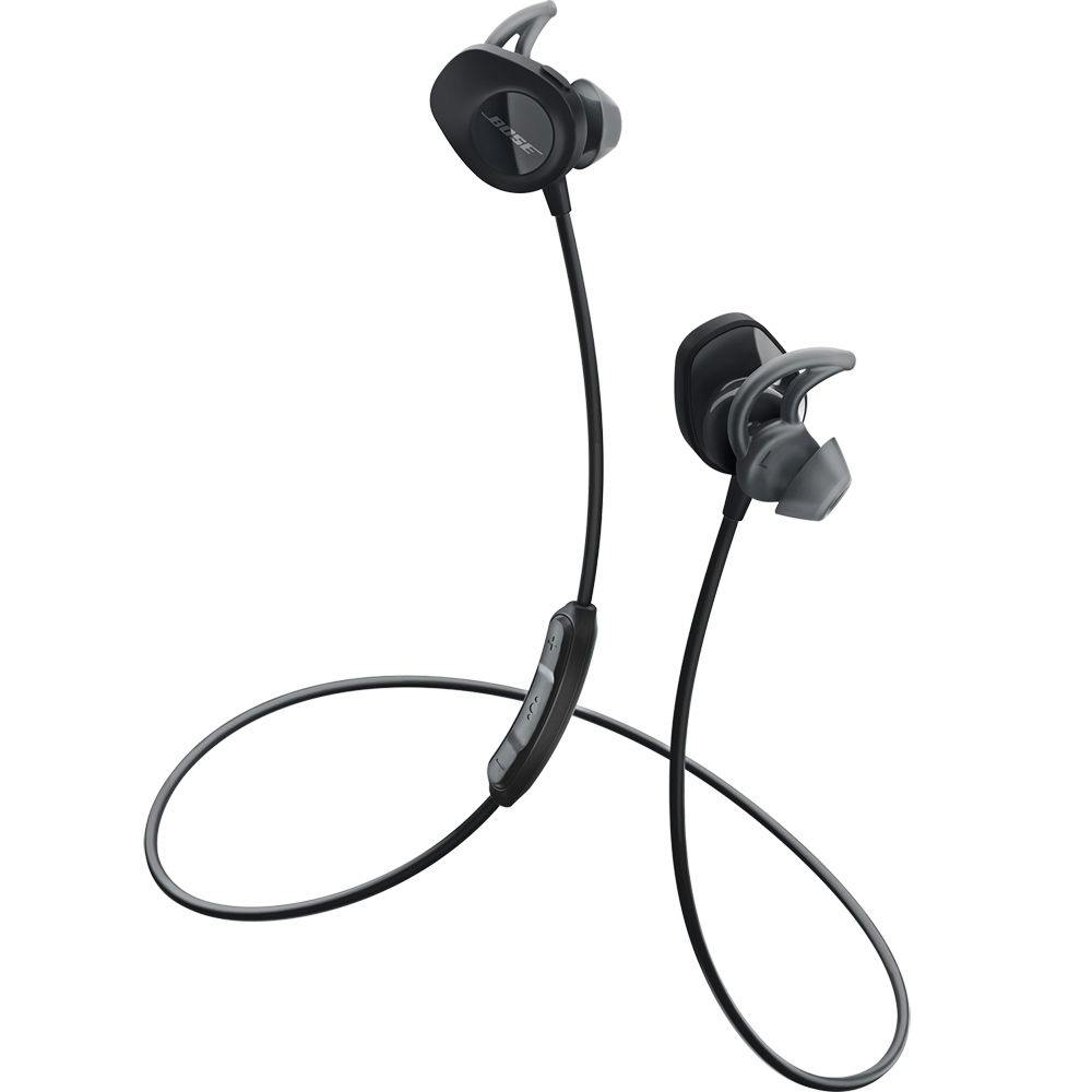 De Soundsport heeft een robuust ontwerp met vrij grote oorclips en muziekknoppen met microfoon en nfc-chip. Er worden verschillende oordopjes meegeleverd, maar geen enkele weet je gehoorgang compleet af te sluiten. Bij buitensporten als hardlopen en fietsen hoor je daarom veel ruis van de wind. De geluidskwaliteit is erg goed, met een diepe bass en heldere boventonen. De Bose Connect-app is niet vereist maar biedt meer instellingen. De dopjes worden geleverd met een fraai opbergetuitje. De accu laadt op via micro-usb en gaat zo’n zes uur mee.