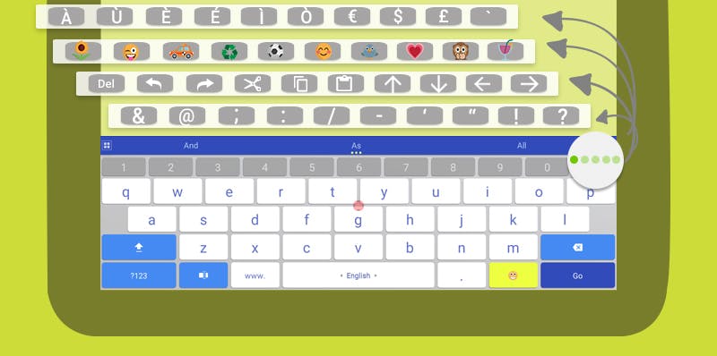 Je kunt ook je toetsenbordfuncties instellen, zoals het gebruik van pijltjestoetsen en cijferweergave bij de letters, om je toetsenbordkwaliteit voor tablet-gebruik te vergroten. Het toetsenbord kan afgestemd worden op hoe jij het wilt gebruiken. Dit door een kleine weergave, grote weergave of opsplitsing van het keyboard in te stellen. Door er een beetje mee te spelen leer je vanzelf wat het beste voor je werkt.