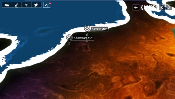De weerkaart is bijzonder gedetailleerd. De drie filters (wind, temperatuur en satellietbeeld) zijn werkelijk informatief. Het is mogelijk om tot straatniveau in te zoomen, al duurt het dan wel een tijdje voor de filterinformatie ook is ingeladen.