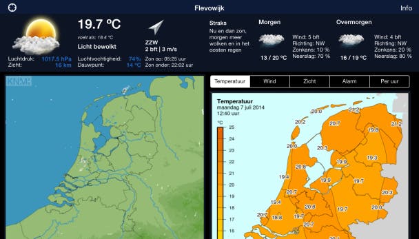 De app biedt ontzettend veel informatie, maar dat komt de overzichtelijkheid niet ten goede. Je moet echt weten hoe je de kaarten moet lezen om er echt iets aan te hebben. Daarmee is dit dan ook vooral een app voor amateur-meteorologen en niet voor wie wil weten of hij zijn paraplu mee moet nemen. Toch zou ook hier wat ons betreft even een goede vormgever mee aan de slag moeten om het ook voor gewone stervelingen een waardevolle aanschaf te maken.