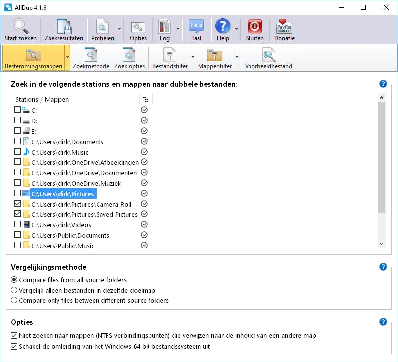 AllDup vindt dubbele foto's, muziek en documenten, zelfs als die over verschillende opslagmedia zijn verspreid. Gelukkig zijn er filters waarmee je bijvoorbeeld op bestandsextensie (.jpg, .docx, .mp4) kunt zoeken. Je kunt ook bepaalde mappen scannen, bijvoorbeeld alleen de map Afbeeldingen. Op deze manier kan je ruimte besparen, maar de software gooit nooit op eigen initiatief software weg. Bovendien werkt AllDup razendsnel.