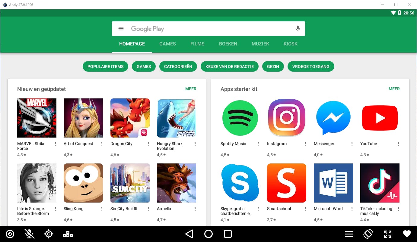 Met NoxPlayer laat je als het ware een Android-telefoon of tablet draaien op je pc of Mac. Je kunt dan apps downloaden via de Play Store. De app is vooral bedoeld voor mensen die graag Android-spelletjes spelen op een groot scherm met behulp van een gewoon toetsenbord en muis. Voor de functies de je bedient vanaf de zijkant van je telefoon, zijn er nu knoppen aan de rand van het venster geplaatst en ook swipen doe je met de muis. Bovendien is het met deze emulator mogelijk filmpjes van je gameprestaties op te nemen om die te delen met vrienden.