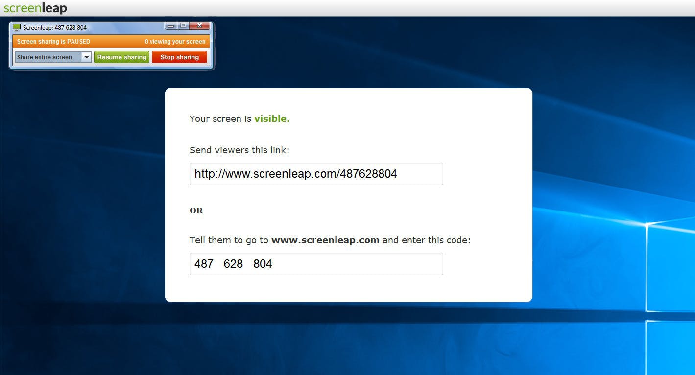Er zijn genoeg tools om een pc op afstand over te nemen, maar wil je gewoon anderen op afstand laten zien wat op jouw scherm gebeurt, dan is ScreenLeap een elegante oplossing. Wanneer je het tooltje op de homepage van ScreenLeap installeert, kun je het actieve venster, het hele scherm of een specifiek schermdeel delen. De andere hoeft gewoon naar een internetadres te surfen. Met een gratis aanmelding mag je maximaal één uur met acht personen delen.