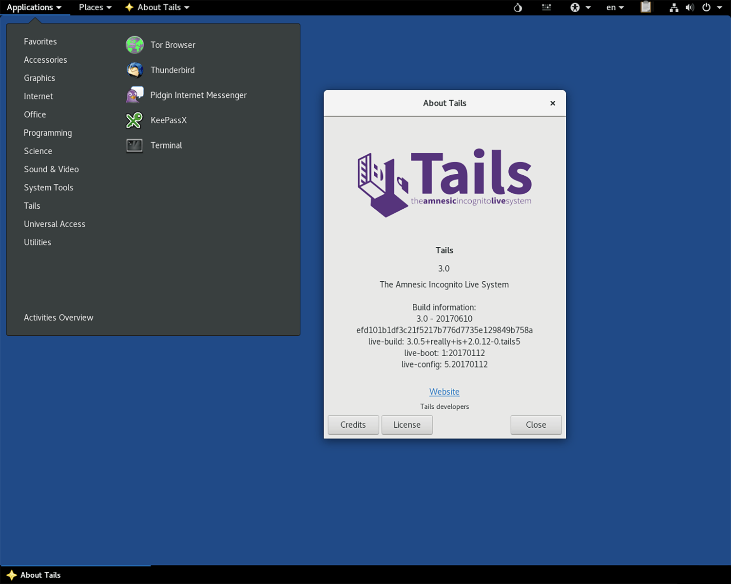 Tails (The Amnesiac Incognito Live System) is een besturingssysteem dat volledig is gericht op de bescherming van de privacy. Om die reden wordt het vaak gebruikt door activisten en journalisten. Het besturingssysteem wordt opgestart vanaf een usb-stick of een dvd en laat dus geen sporen achter op de computer zelf. Daarbij maakt dit systeem standaard gebruik van het Tor-netwerk. Het is zelfs niet bekend wie de ontwikkelaars zijn van Tails. Over anonimiteit gesproken … Let wel op dat je steeds de allerlaatste versie gebruikt, want ook in dit programma worden soms security-gaten ontdekt en weer gedicht.