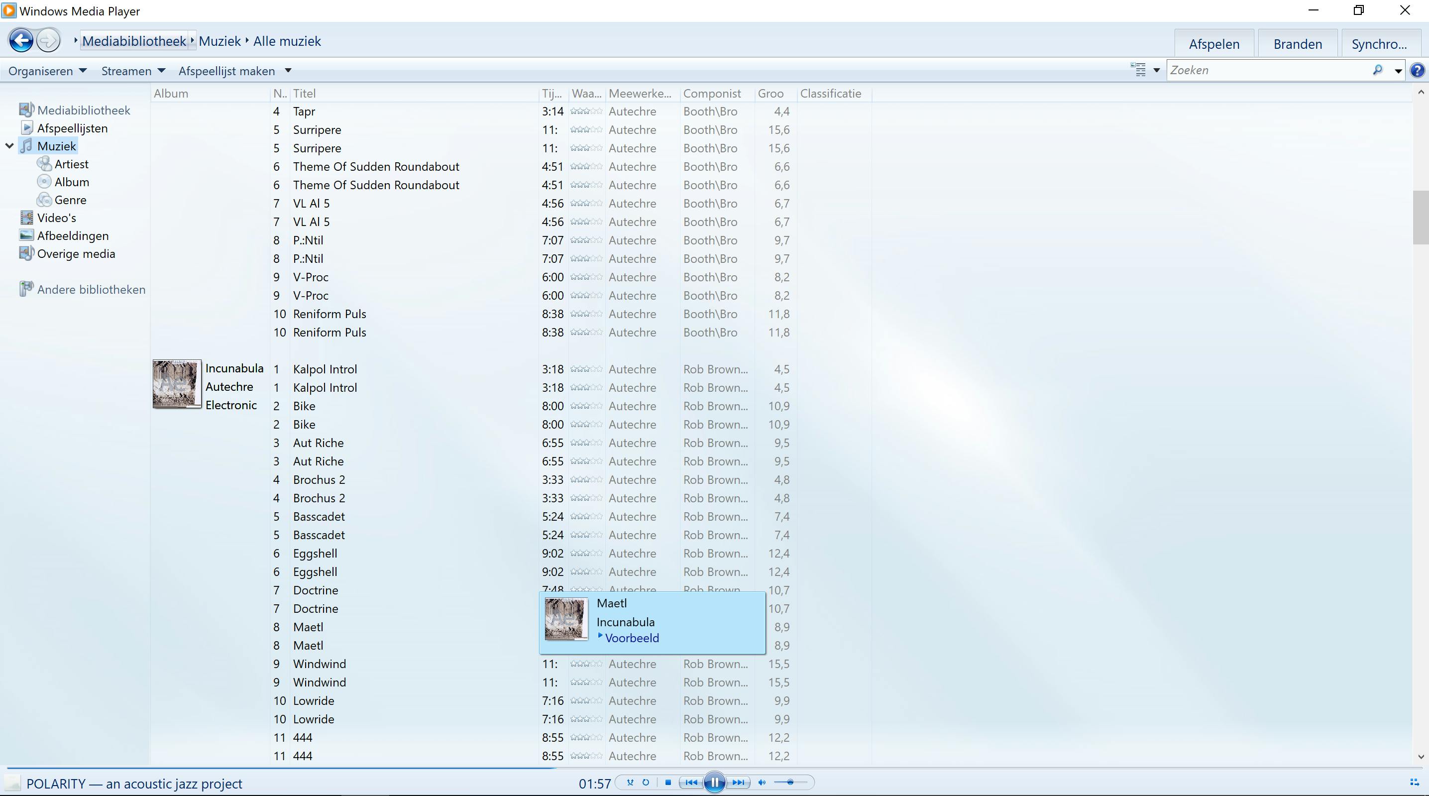 Uiteraard mag Windows Media Player niet ontbreken in deze test: het programma is onderdeel van Windows 10. Net als bij Foobar2000 wordt een aantal bestanden niet geïmporteerd; de flac-bestanden zijn echter wel terug te vinden. Windows Media Player is overigens de enige audiospeler die alle album art meteen aan de juiste albums toewijst. De speler geeft standaard ook alle andere audiobestanden weer die het op je harde schijf vindt, dus het kan zijn dat je een aantal duplicaten in je lijst vindt. Je moet overigens wel handmatig door je collectie gaan: Windows Media Player herkent duplicaten niet automatisch. Je kunt gemakkelijk afspeellijsten maken en informatie over albums en songs automatisch door Windows Media Player laten aanvullen. Metadata zijn ook toe te voegen, maar deze optie is een beetje verstopt en niet zo uitgebreid als bij bijvoorbeeld MusicBee of iTunes.